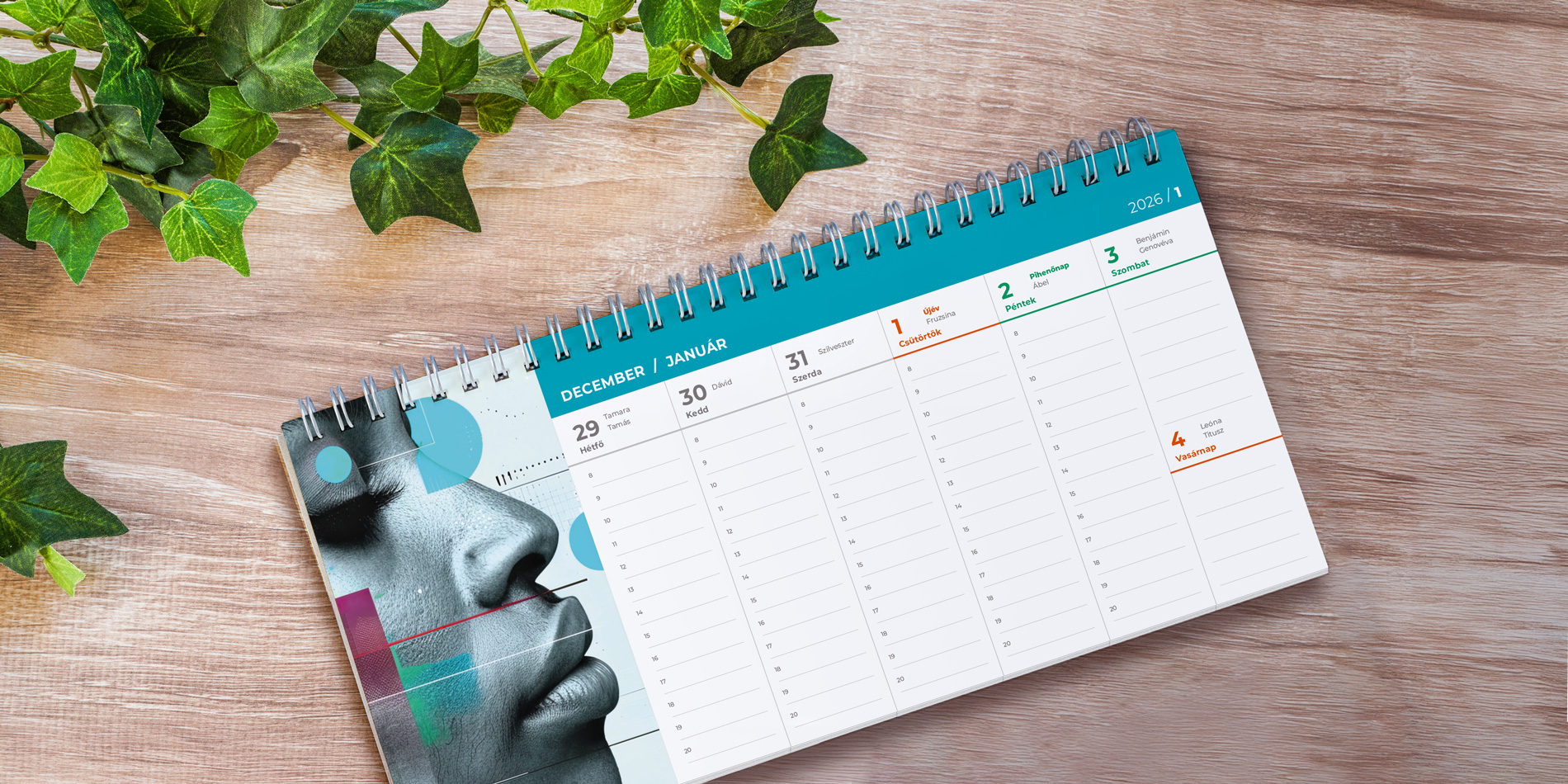 A havi bontású falinaptár egyszerre praktikus és dekoratív megoldás otthonra vagy irodába. Nagyméretű, jól átlátható felosztása segíti az egész hónap tervezését, miközben a fal díszeként is funkcionálhat. Tökéletes arra, hogy minden családtag vagy munkatárs számára egyértelművé tegye a fontos eseményeket és időpontokat.