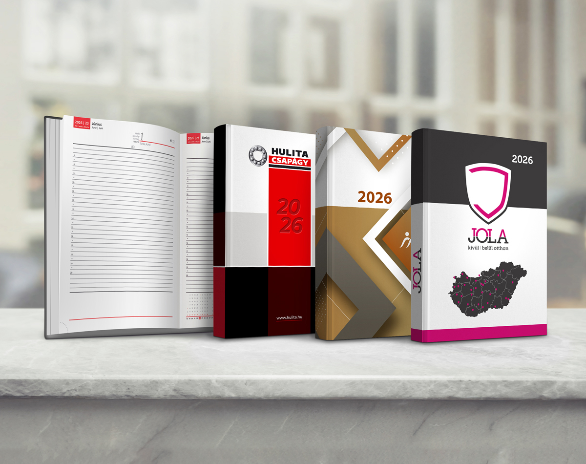 Egyedi 2026-os határidőnapló, asztali- és falinaptár
